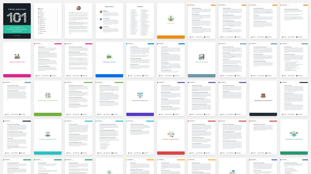 101 answers to common freelancing questions — even the ones you didn't think to ask yet. Gain confidence and clarity as you pursue a life of self-employment.